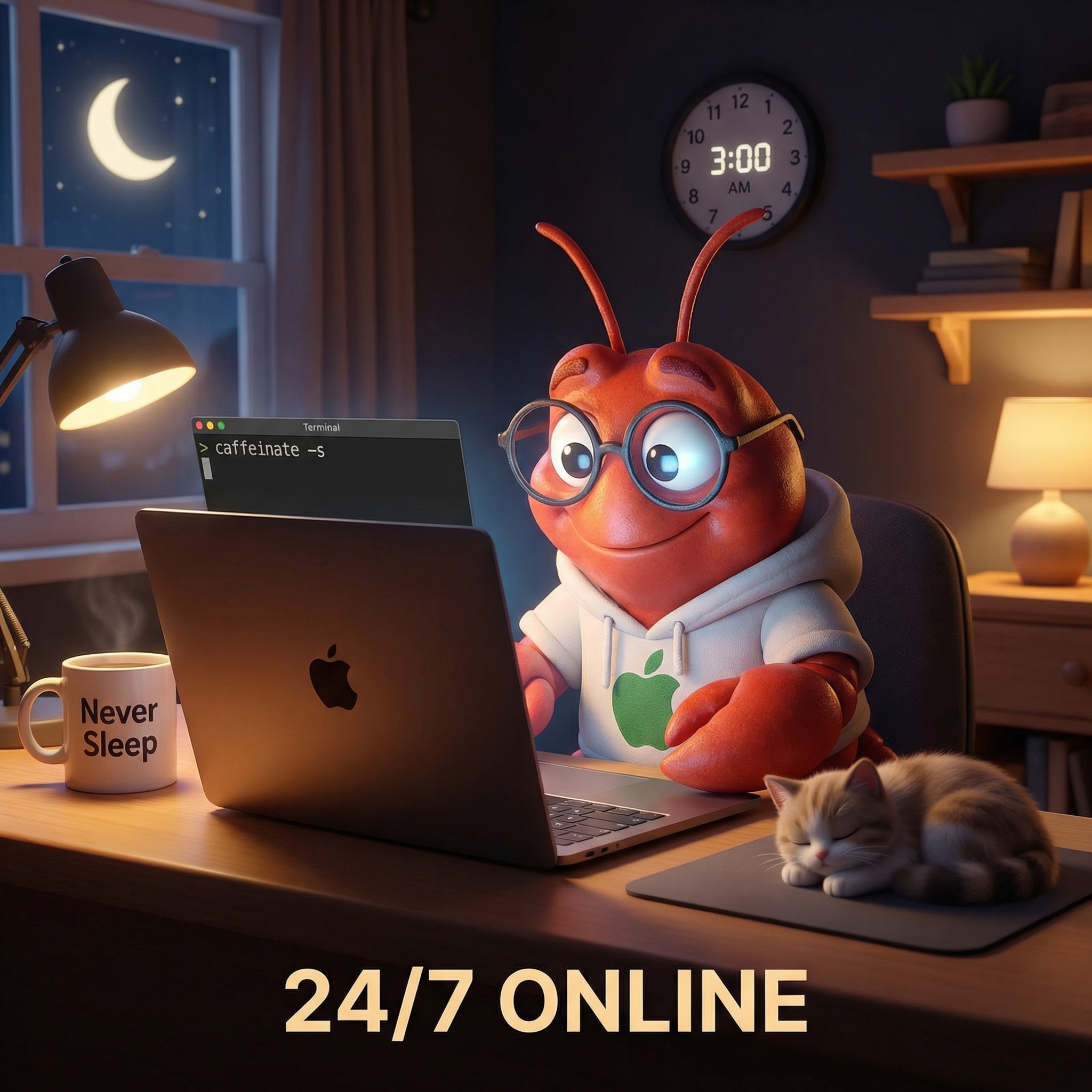 讓蘋果蝦永遠不睡:macOS 防休眠設定讓 AI Agent 24/7 在線